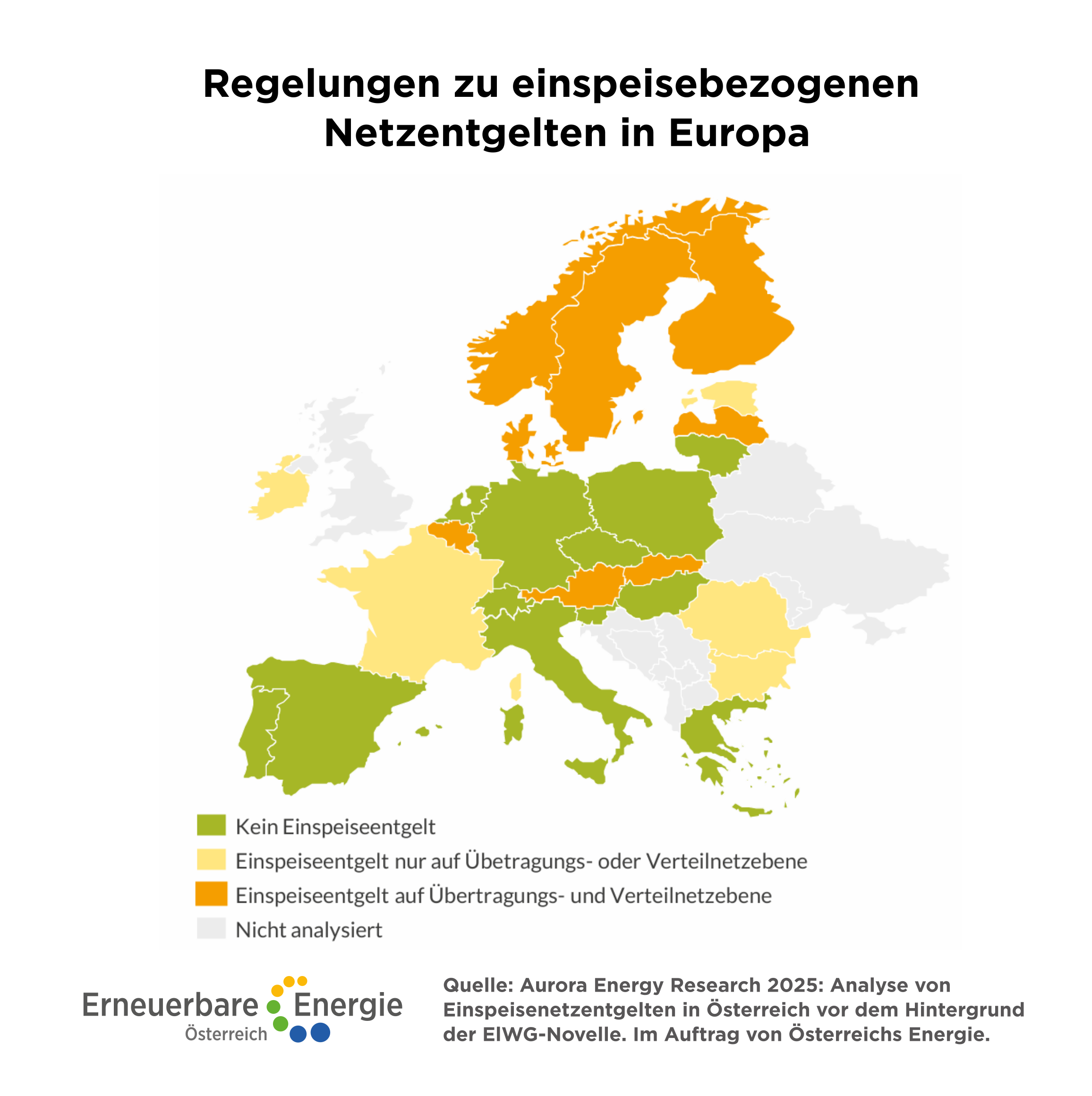 Einspeiser mit mehr als 5 Megawatt Leistung tragen in Österreich bereits Kosten für Netzverluste, für Systemdienstleistungen wie Frequenz- und Spannungshaltung, als auch das Netzanschlussentgelt sowie diverse zusätzliche Investitionen in die Netzinfrastruktur im Zuge der Projektumsetzung. Ein auf Realdaten basierender Windpark mit sieben Windkraftanlagen und 45 Megawatt Leistung leistet allein im ersten Betriebsjahr eine Summe von mindestens 3,6 Millionen Euro für Netzanschluss und laufende Netzentgelte. Über die Laufzeit dieses Windparks von 20 Jahren ergeben sich dadurch in Summe 13,2 Millionen Euro.